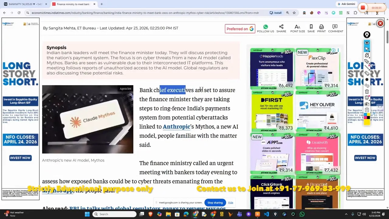Economic Times article content referencing Anthropic Mythos cyber risk and meeting with bank executives